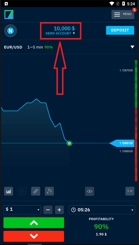 Parabéns! Você se cadastrou com sucesso e tem US$ 10.000 na conta demo. Uma conta demo é uma ferramenta para você se familiarizar com a plataforma, praticar suas habilidades de negociação em diferentes ativos e experimentar novas mecânicas em um gráfico em tempo real sem riscos.